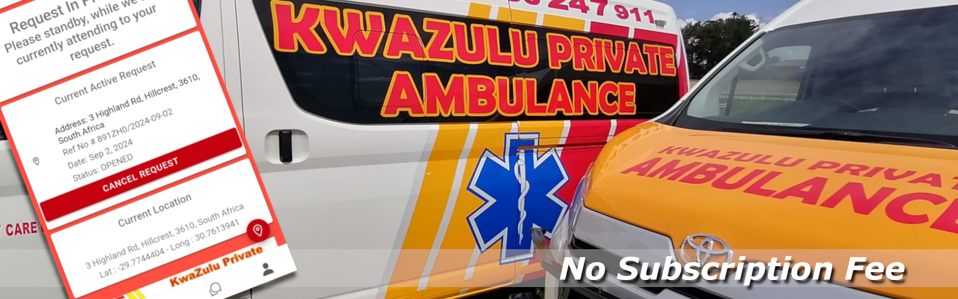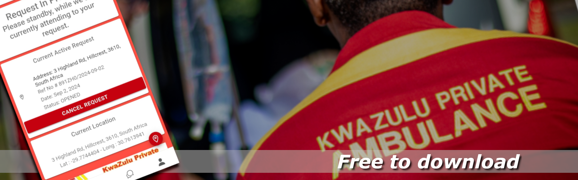 AMBULANCE app is Free, no subscription fee. Simply Download the AMBUALNCE app and have the comfort of knowing you have KwaZulu Private Ambulance Service in your pocket.